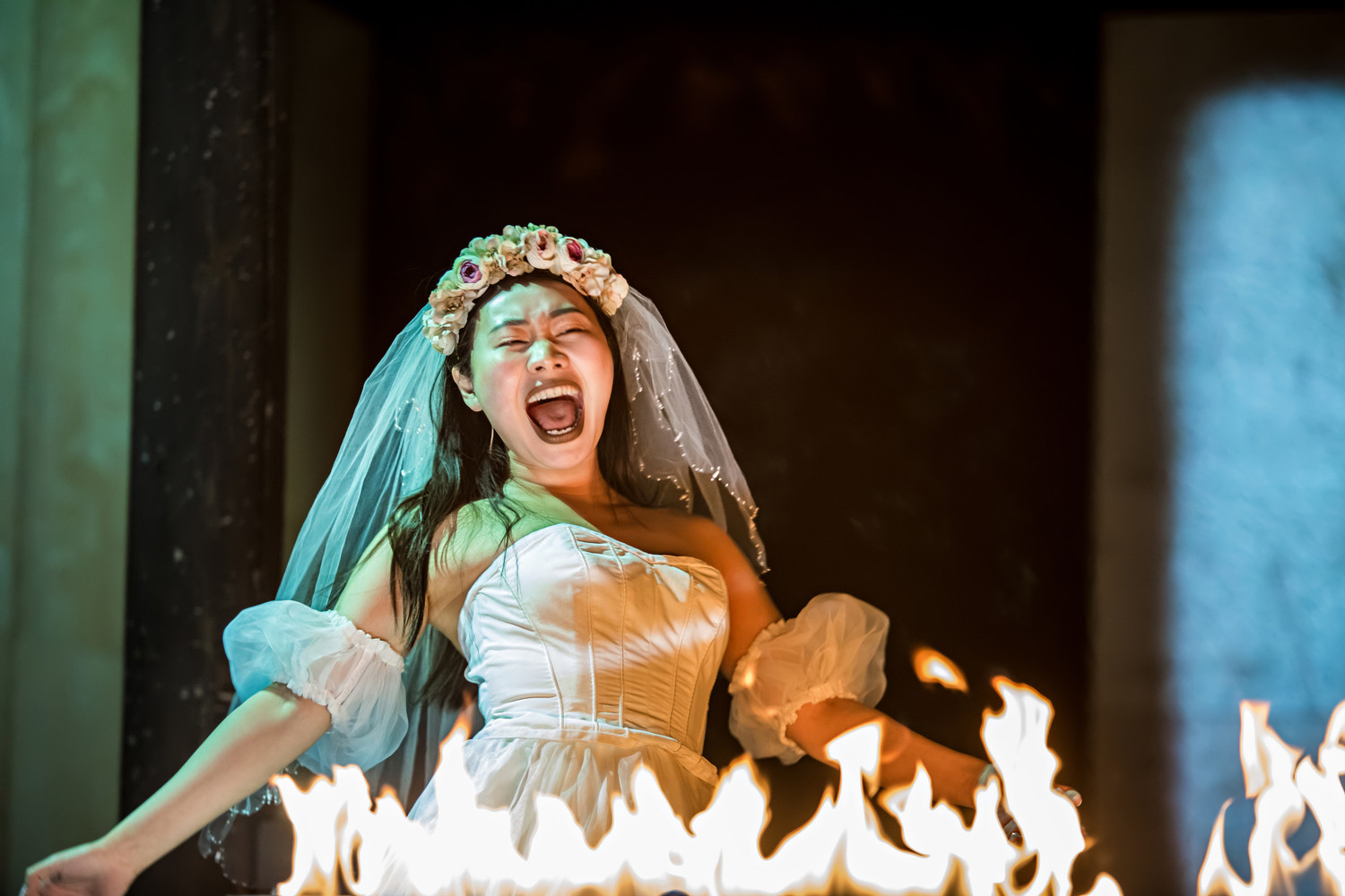 Потому что всё, что нужно, сказал сам Кирилл, укравший у рецензентов хлеб в тексте «Человек-барокко». В этом тексте, открывающем буклет спектакля, и ключ к трактовке: если поставить между словами «человек» и «барокко» дефис, речь пойдет не о человеке определенной исторической эпохи (между Ренессансом и Просвещением), а о неправильном, странном человеке-барокко: «человеке-аффекте, человеке-боли», пишет Кирилл. В спектакле этот образ имперсонируют разные герои – байроновский Художник и кукушкинский Студент, Певичка Риты Крон и Жанна Марии Поезжаевой-Опельянц (едва уловимое эхо чудесного студенческого спектакля Жени Беркович «Жаворонок» с Машей – Жанной д’Арк), Энди (оперный певец Никита Воронченко) и Невеста (Ян Гэ).