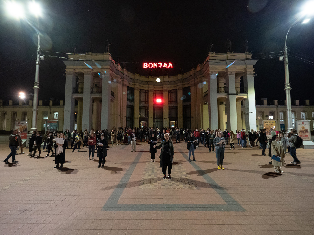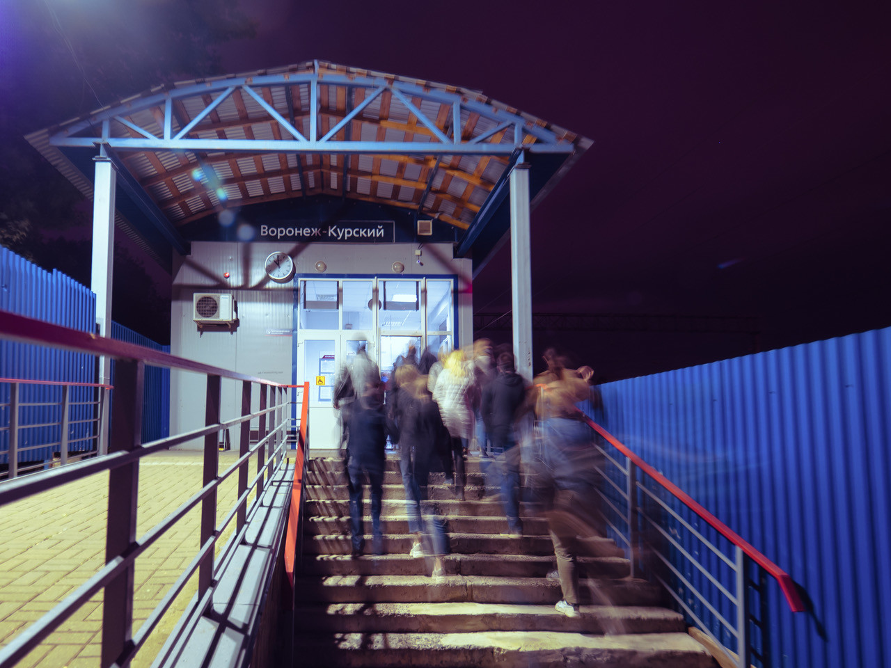 Сначала – азарт и удивление: ночной старт «Жителей» – на вокзале Воронеж-Курский (о существовании которого я, в Воронеже родившийся и выросший, не знал), откуда зрители перемещаются на центральный вокзал в электричке. Перформансы и концерты в здании вокзалов я прежде видел, но вот зафрахтованный специально для спектакля электропоезд – фантастика.