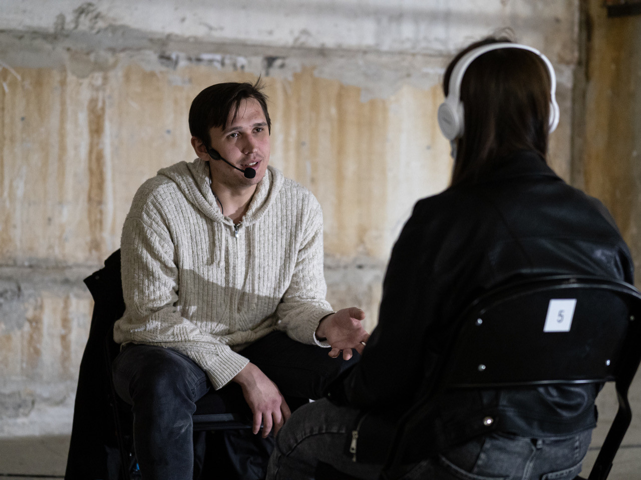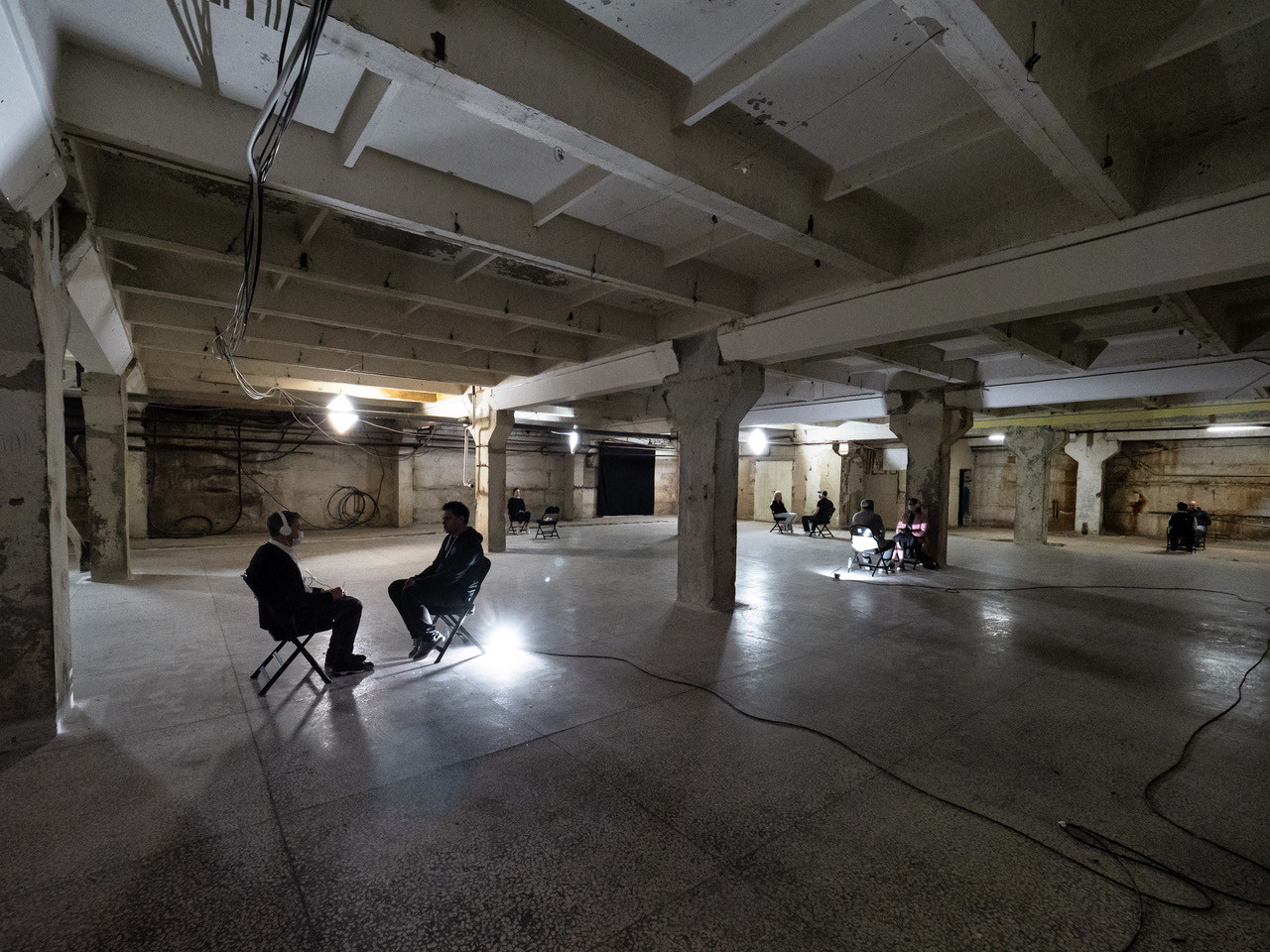 «Время, которое я займу у вас...» игрался в бункере бывшей типографии, сейчас гордо именуемом арт-пространством «Прогресс». Холодный бетонный подвал с ржавыми стенами в подтёках – самое верное место для эксперимента, рискнувшего обратиться к самым неудобным, самым болезненным страницам платоновского наследия – письмам писателя. В них – арест и смерть сына, мытарства в Тамбове, бытовой непокой и экзистенциальная тоска. Их читают десять актёров в разных точках регрессивных руин «Прогресса», обращаясь напрямую к зрителю, занимающему стул напротив. Текст произносится вживую, но транслируется в наушники; тут сразу и предельная доверительность, глаза в глаза, и максимальное отстранение.