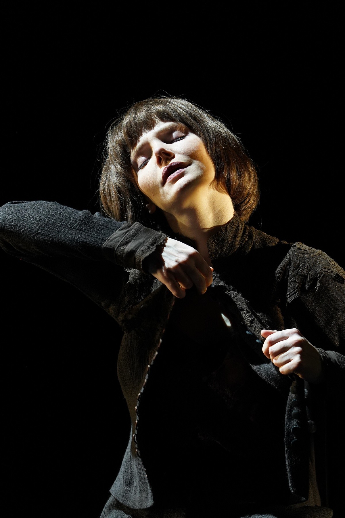 Движение героев сведено к минимуму, но не так радикально, как, например, в «Брате Иване Фёдоровиче» Сергея Женовача (тоже, кстати, со светом Дамира Исмагилова и декорациями Александра Боровского); несколько горячих жестов случится – будут и из трюма-преисподней подниматься, и танцевать (музыкальной темой – почти приджазованная версия романса Александра Гурилёва, получившего широкое хождение в виде матросской песни «Раскинулось море широко»), и стулья (кажется, единственный реквизит, использованный художником Боровским) ломать. Врежется в память, как сначала Грушенька (Екатерина Тарасова), а за ней и Катерина Ивановна (Елизавета Боярская) пройдут между сидящими Карамазовыми, раздвинув плечи мужчин взмахом бёдер: Грушенька – как матёрая femme fatale, Катерина – в подражание сопернице.