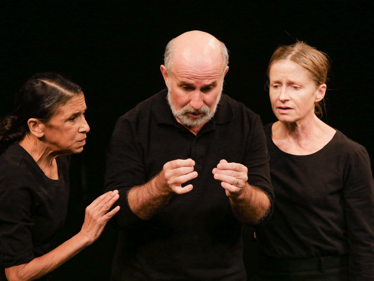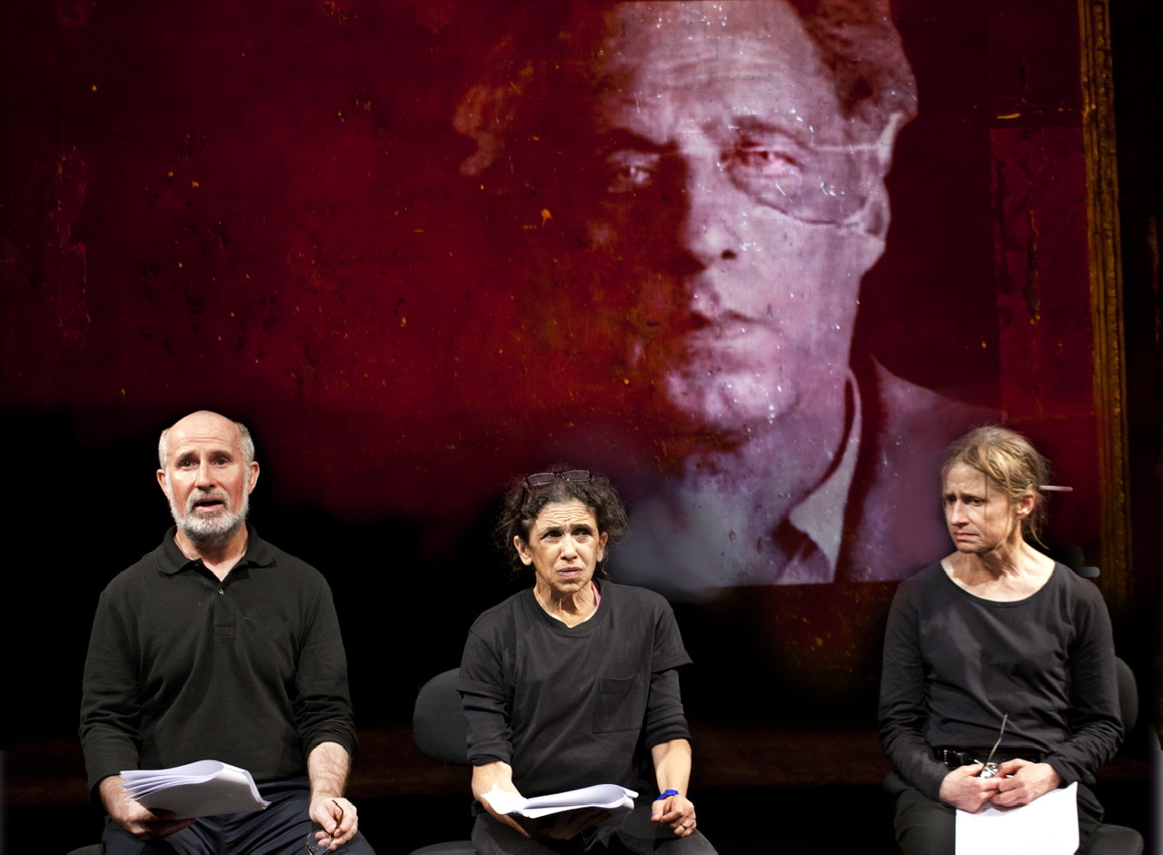 Всего три артиста – Хейли Кармайкл, Кэтрин Хантер, Марчелло Маньи; не делают, вроде бы, ничего особенного: говорят (на простом английском) и показывают (простые актёрские этюды). Начинают за здравие – с анекдотов про сотворение мира, заканчивают смертельным выстрелом – казнь Мейерхольда, единственный громкий звук в этом камерном спектакле.