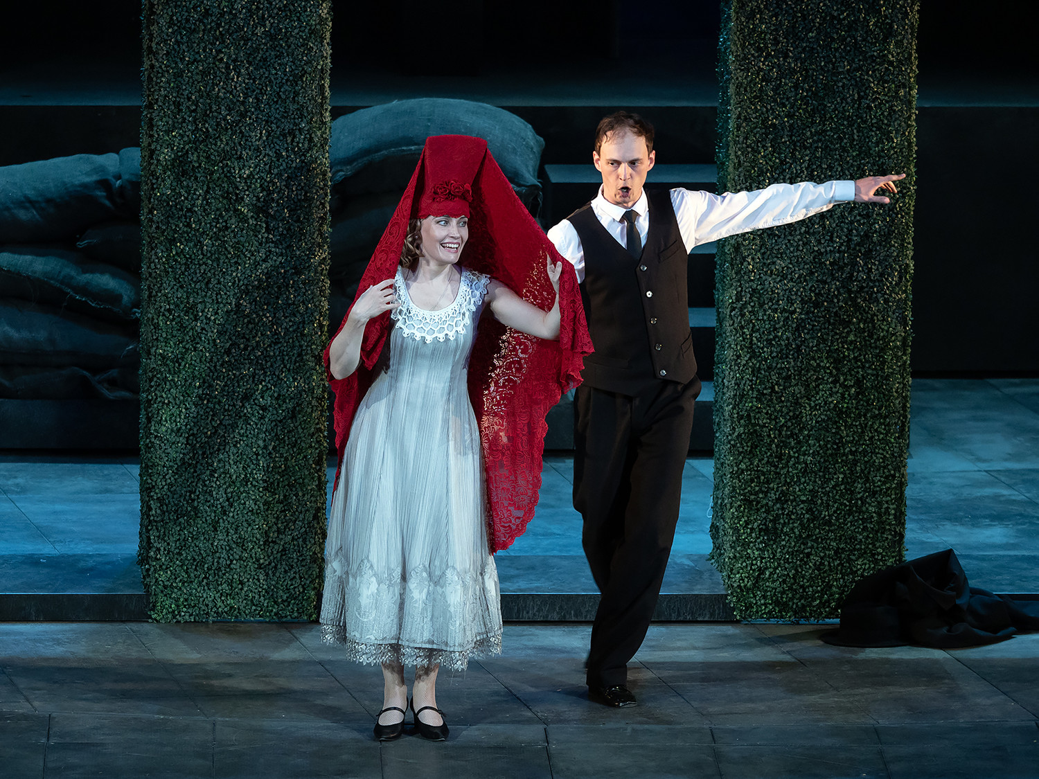 и его соперничество с седеющим ловеласом Альмавивой – Кирилл Афонин (в других составах – Игорь Горностаев и Роман Дюдин) – оказывается не сословным, но поколенческим противостоянием. Сюзанна – Александра Добролюбова (в очередь с Полиной Карташовой) – чарующе легкомысленна, Розина – приглашённая из Музыкального театра им. Станиславского и Немировича-Данченко Наталья Петрожицкая (в других составах – Дарья Филиппова и Алина Отяковская) – неожиданно и искренне, без мелодрамы, трагична. Впрочем, трагическая отчаянность – это не про Бычкова, режиссёра-гедониста, превращающего трио Сюзанны, Розины и Керубино – солистка Большого театра Екатерина Лукаш (в другом составе – Татьяна Измайлова) – в эротическую сцену.