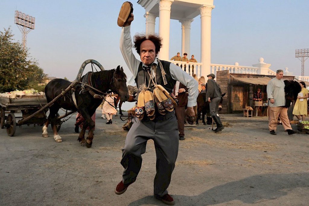 В «Болгарии» воображаемая студия мечты строится определённо на некогда славном фундаменте Свердловской, расцвету и закату которой Федорченко (на фото выше) посвятил свой предыдущий фильм – безумную и на все сто процентов документальную комедию «Кино эпохи перемен». Да и играют в «Болгарии» едва ли не все артисты «Коляда-театра» – включая самого Николая Владимировича Коляду, рассмотреть которого (в эпизодической роли командира полка) я с первого раза не успел; драматурга Ярославу Пулинович в форме сестры милосердия узнал, а Коляду проморгал. Извиняет меня только насыщенность кадра – людьми, предметами, фантазиями; и тесно Федорченко внутри одного кадра, отчего он то и дело прибегает к полиэкрану – и ничего подобного этим визуальным экспериментам я не видел.