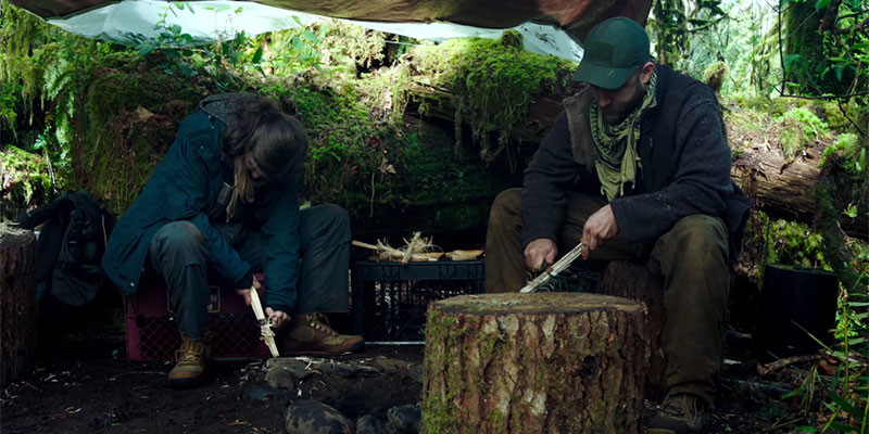 Что до героев нового фильма Дебры Граник «Не оставляй следов» – пережившего Ирак ветерана Уилла (Бен Фостер) и его 13-летней дочери Том (новозеландская вундергёрл Томасин Маккензи) – то они в лесу живут. Спят в палатке, укрывшись, как пара продрогших кочерыжек, слоями одёжек, спальных мешков и одеял; пьют выжатую из мха предрассветную росу; греются от лучины.