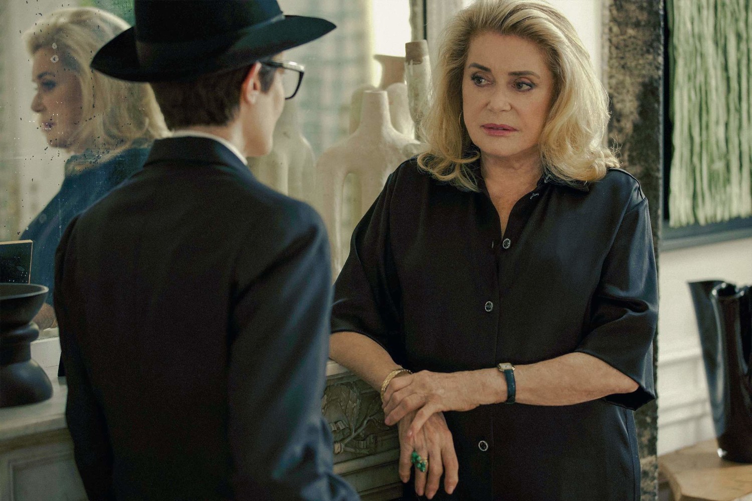 Весьма убедительной реинкарнацией – Кьяра жутко упорна в намерении быть Марчелло; но влюбляется, впрочем, в грустного британского солдата Колина (вот он – чуть ли не единственный полностью вымышленный персонаж, герой Хью Скиннера). Встреча с романтическим англичанином напоминает о «Белых ночах» Висконти, где роль достоевского мечтателя играл папа Кьяры. И всё что-то напоминает – включая другие фильмы; и самого Оноре (Денёв дивно поёт «Над чем ты смеёшься, Марчелло» – так же легко переходя на пение, как это делали персонажи хита Оноре «Все песни только о любви»), и десятки других. Включая – что никак не могло быть запланировано – «Субстанцию», показанную в том же каннском конкурсе:
