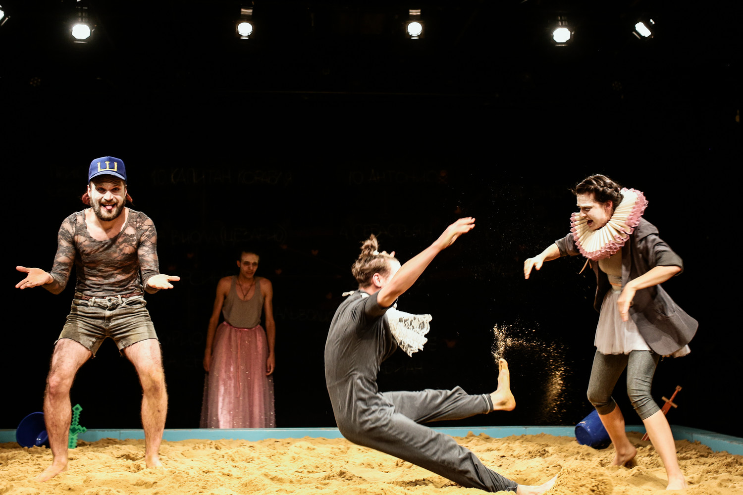Муравицкий и компания возвращают старому тексту, который каких только метаморфоз не пережил, от невесомо церемонных до плотски зримых (подробно о них – здесь), пьянящую радость. Добиться такого игрового азарта, так присвоить Шекспира крайне трудно, спектакль потребовал многомесячных репетиций – но всё это «за кадром»; умом понимаешь про труд и пот, а глаз видит полёт, и сердце веселится и ликует.