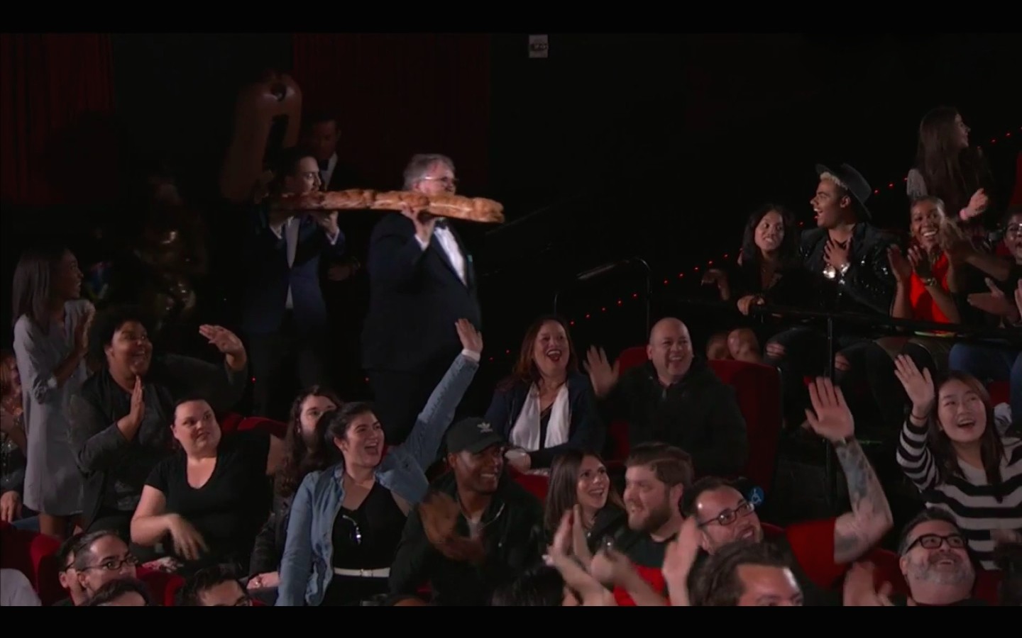 Теперь Киммел с командой добровольцев (в которой, благодаря собственным габаритам и двухметровому сэндвичу, выделялся Гильермо дель Торо) отправился в соседний кинотеатр, где попавшие в объектив скрытых камер ночного видения зрители смотрели «Излом времени». Просмотр людям сорвали, но они не расстроились.