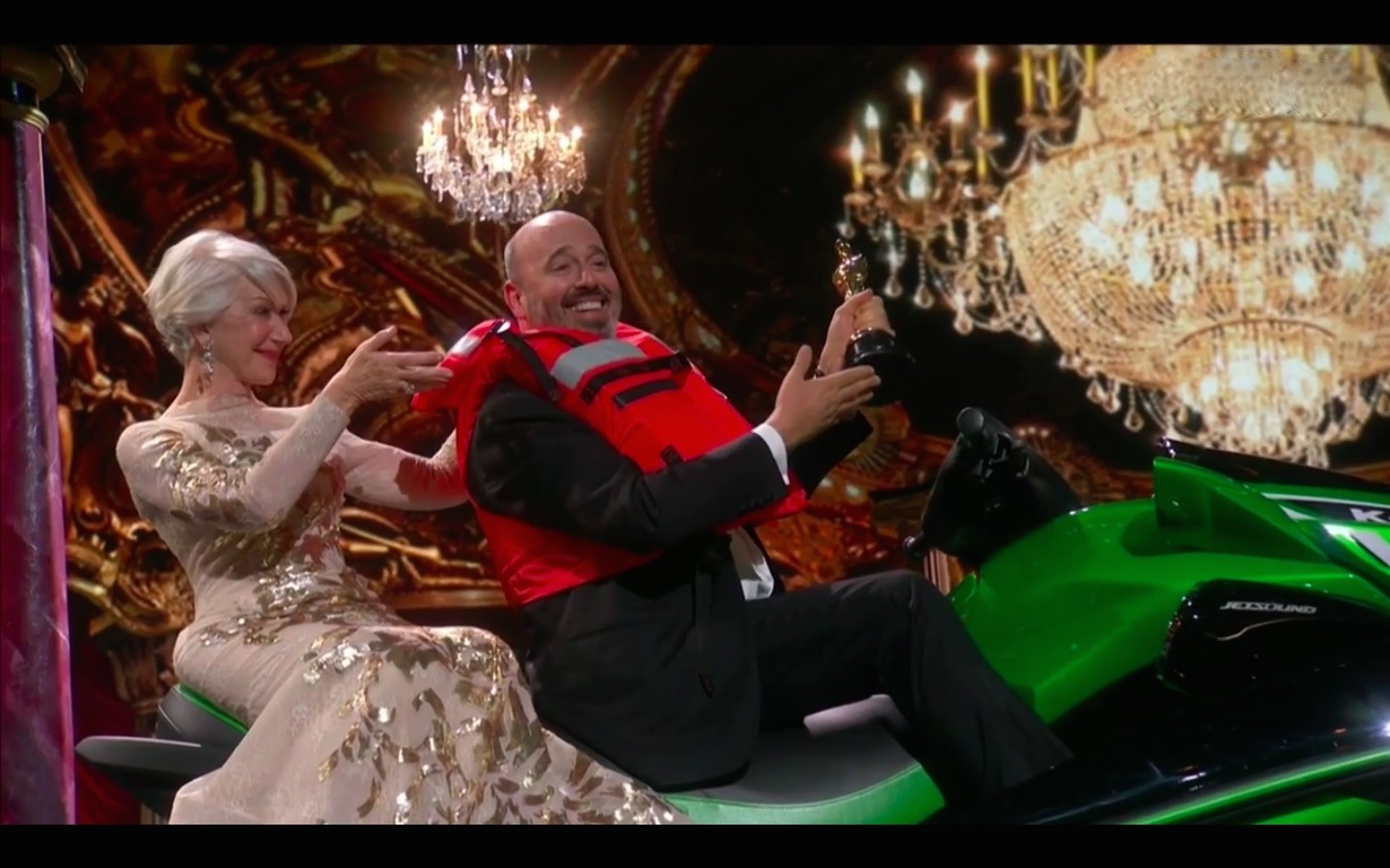А еще Киммел заметил, что хронометраж церемонии – не резиновый, потому тот, кто скажет самую короткую речь получит в награду водный мотоцикл Kawasaki.