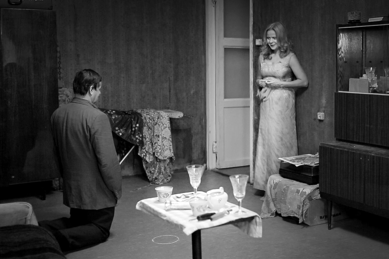 Казалось бы, эксперимент по трансформации театра в кино: экранизация ранней гротескной комедии Василия Сигарева (он, кстати, возглавлял жюри первого «Движения» – пятилетний юбилей оправдывает миниатюрные ностальгические ремарки) – в широкоэкранном формате и в ч/б. Но к тексту, звучащему удивительно нежизнеподобно, не добавлено, по сути, ни театра, ни кино – под чем я понимаю осмысленное режиссерское решение; вряд ли к такому можно отнести беззастенчивую эксплуатацию «взгляда Кабирии» (российскую духовную наследницу феллиниевской чудачки играет Нелли Попова) и проходящие рефреном кадры умирающей деревни (метафора поруганной чистоты и нравственного оскудения? или просто фотодокументация дыры, в которую жаль возвращать даже такую неприхотливую героиню?).