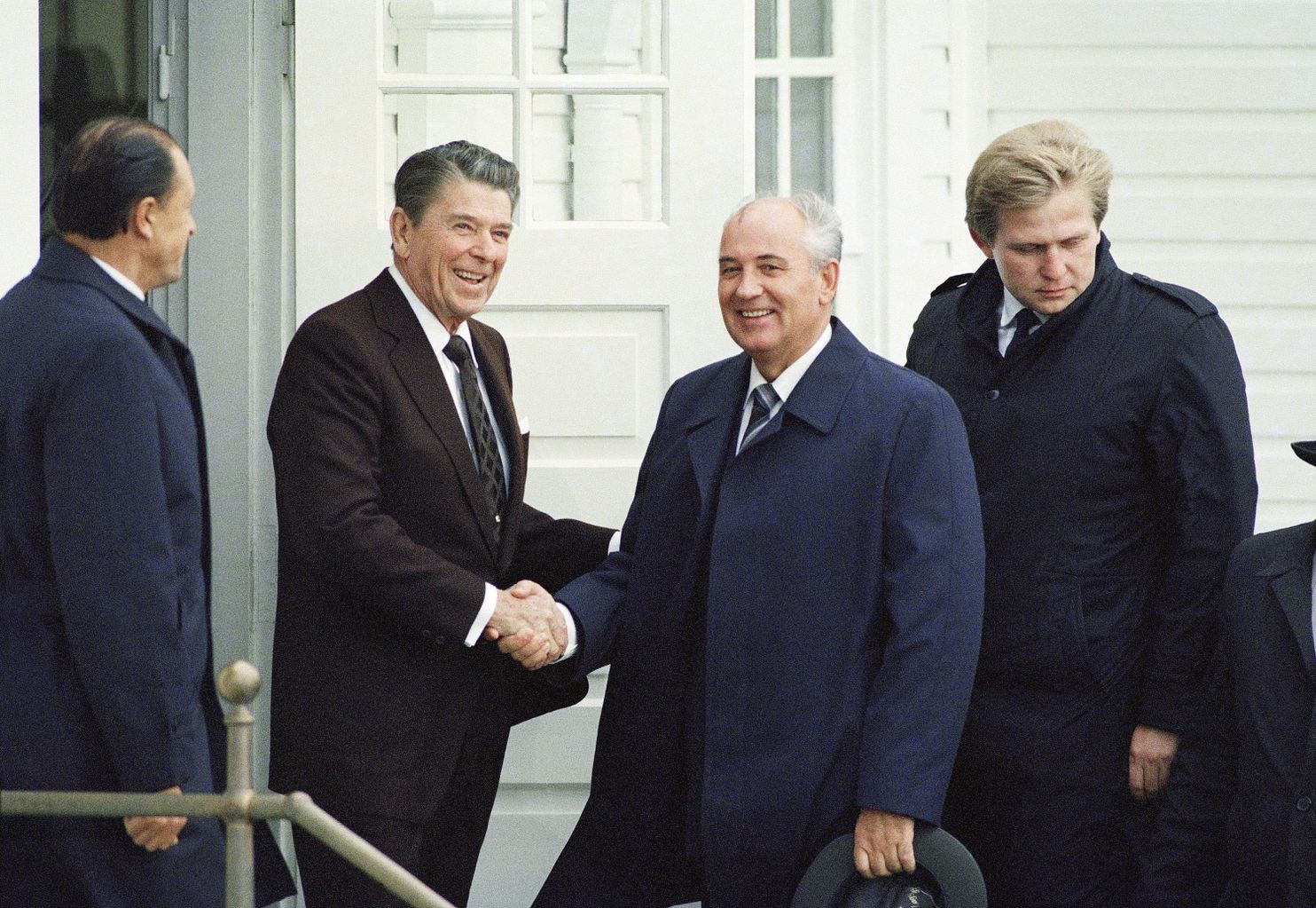 в одном из кадров, у гроба Раисы Максимовны, мелькает нынешний президент РФ – подобный фильм про него невозможен, как невозможно и такое поздравление Пугачёвой. У Херцога есть эпизод, в котором современные туристы фотографируются в Рейкьявике, имитируя рукопожатие Горбачёва и Рейгана: вы знаете современных политиков, чьи действия кто-то стал бы вот так реконструировать?