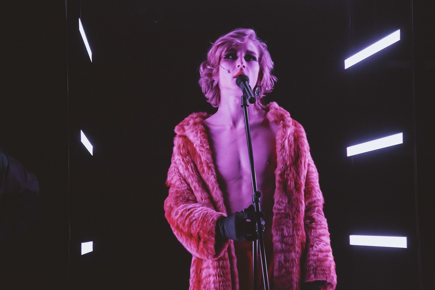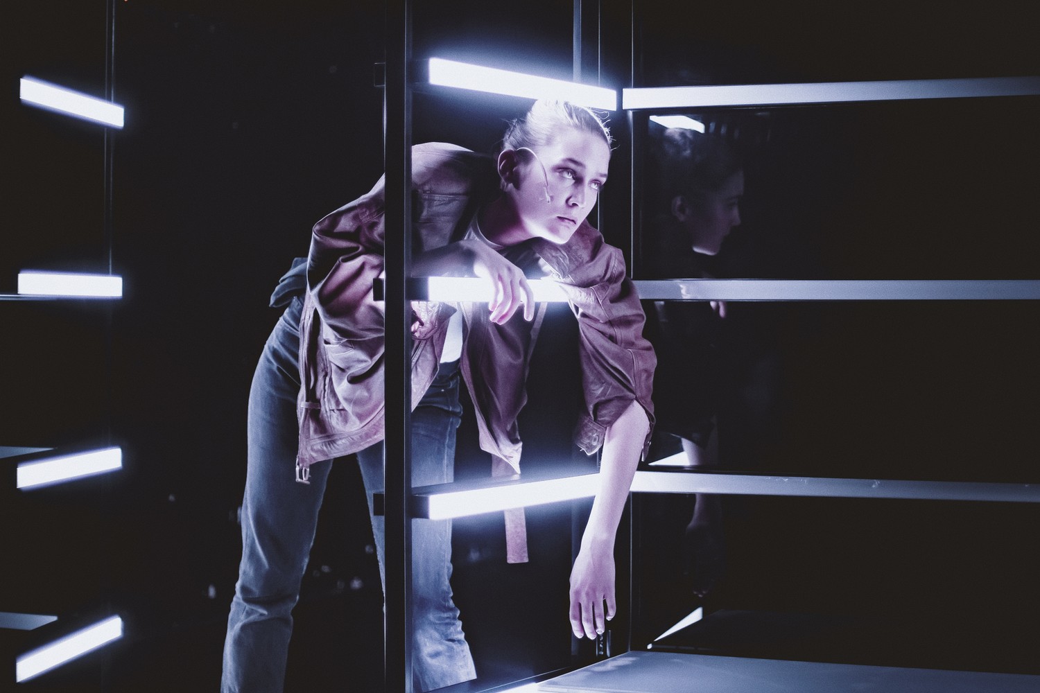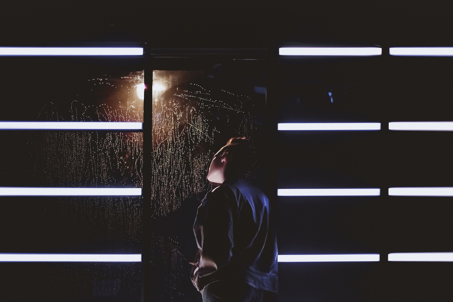 В «Дожде» же (художники – Александр Леонов и Светлана Васильева) неон – динамичная деталь, создающая образ ночи и города точнее подробных декораций. Здесь герои будто вписаны в рамки-витрины; «я знаю, здесь пройдет моя жизнь, жизнь в стёклах витрин», как пел Цой, на ассоциации с которым «Дождь», впрочем, не напрашивается: в театральном «Нойкёльне» рокерской жилки нет.