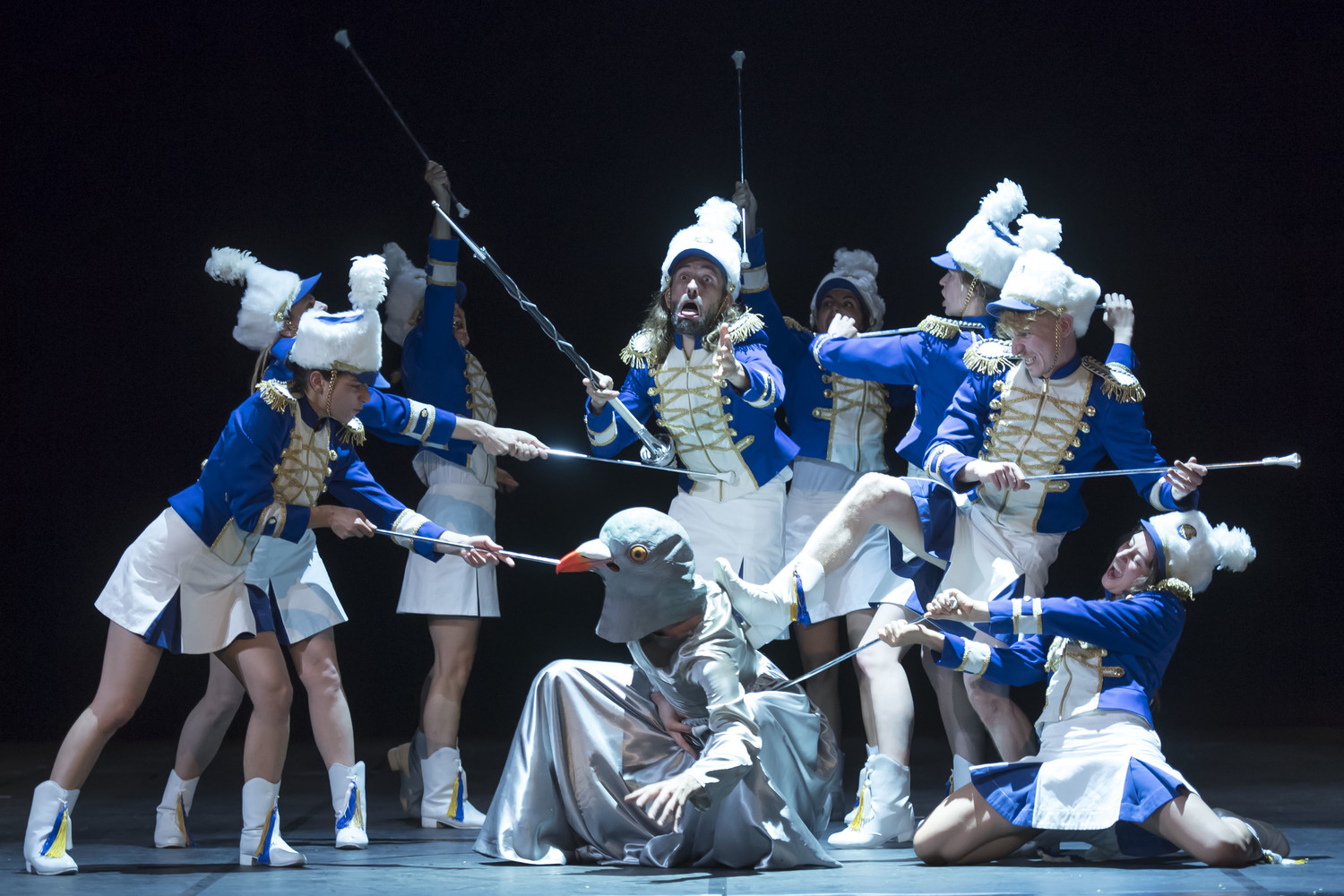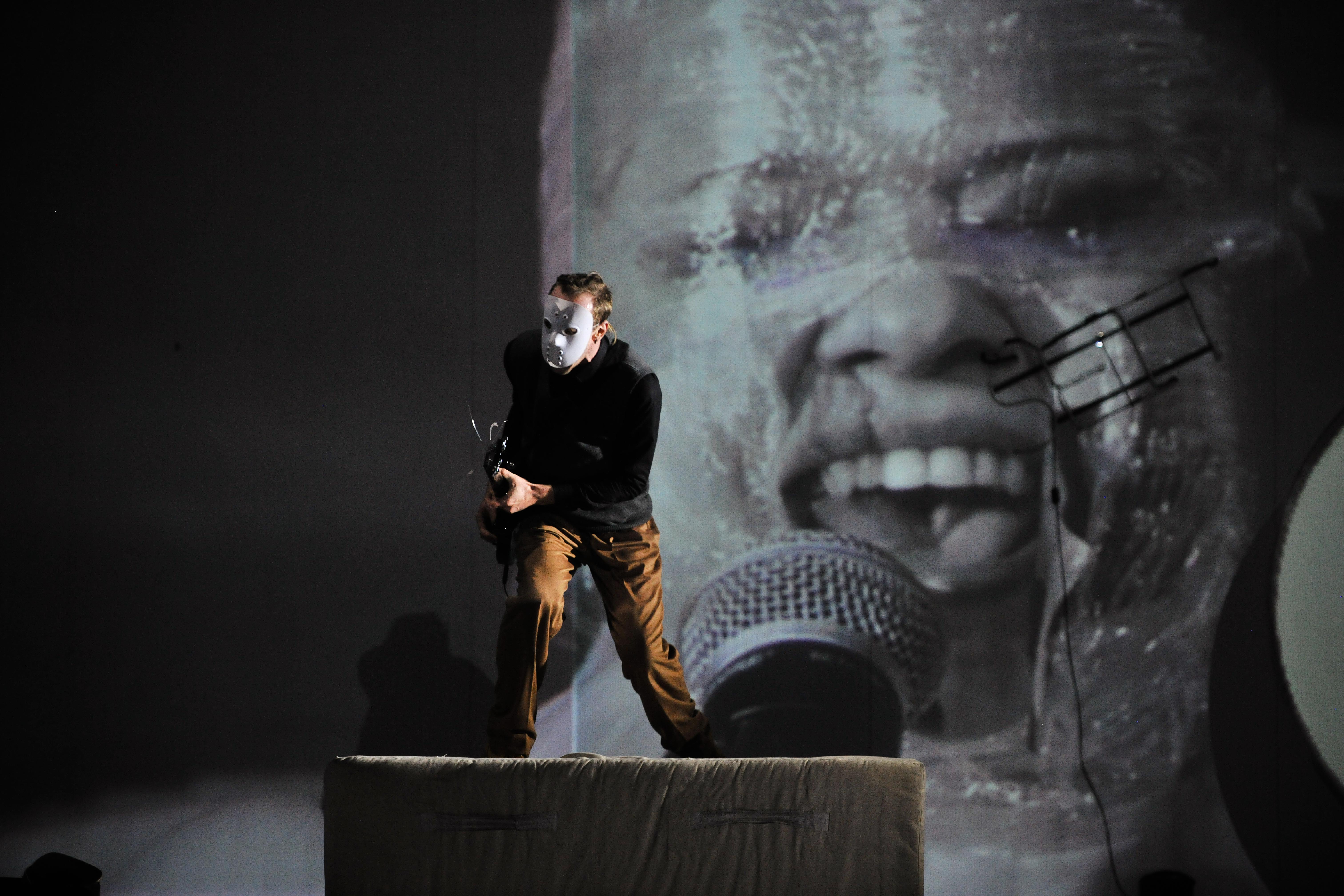 На основной сцене Театра Наций – ослепительная театральная провокация Яна Фабра «Бельгийские правила / Бельгия правит», шоу с немыслимым количеством исходящего театрального реквизита.