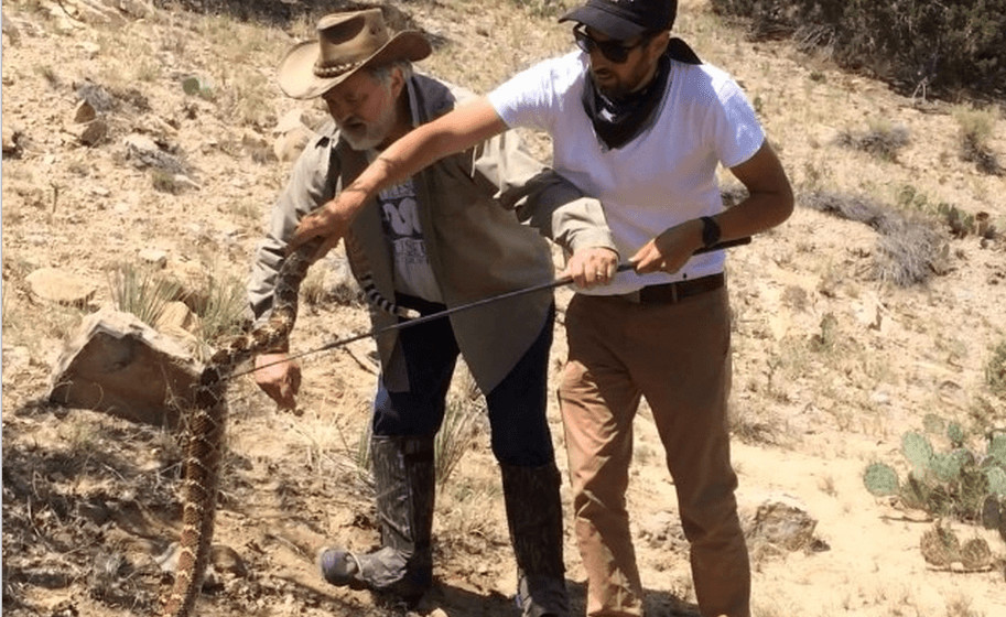 Второй вестерн в программе «Амфеста» – «В долине насилия» – сделал азартный мастер малобюджетных хорроров; на фото он с Итаном Хоуком (которого Уэст «делит» с Фукуа и «Великолепной семёркой»). Тай пугал летучими мышами-вампирами в «Гнезде», призраками в «Тайнах старого отеля», религиозными сектантами в «Святилище». Видимо, с возрастом (Уэст как-то незаметно сменил статус наглого новичка на вполне признанного режиссера, приближающегося к 40-летию) он задумался о более «серьёзном» жанре. Но азарт и здоровая наглость предыдущих работ никуда не делись. И элементы хоррора – вроде вот такой змеи – тоже.