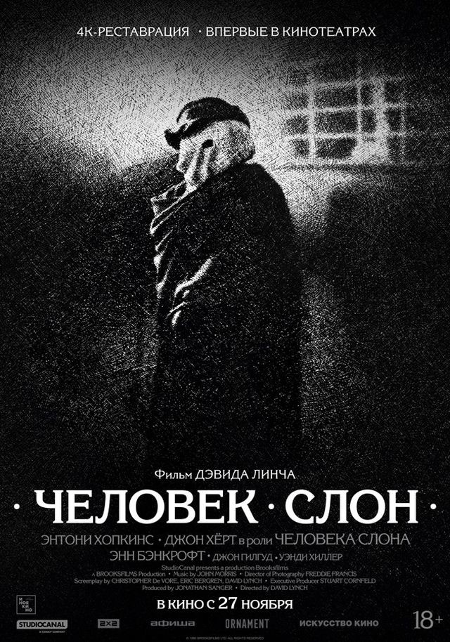 О реставрации:4К-реставрация «Человека-слона» была выполнена в 2020 году к 40-летнему юбилею фильма. Весь процесс курировал Дэвид Линч. Работа проводилась в студиях L’Immagine Ritrovata (Болонья и Париж), при этом режиссер лично отвечал за цветокоррекцию, выполненную на базе лаборатории Fotokem в Лос-Анджелесе. Реставрация была создана с использованием оригинального негатива и новейшей технологии HDR с 16-битной глубиной цвета, что позволило максимально точно восстановить контраст, детали и тональные нюансы черно-белого изображения, сохранив художественный замысел Линча.